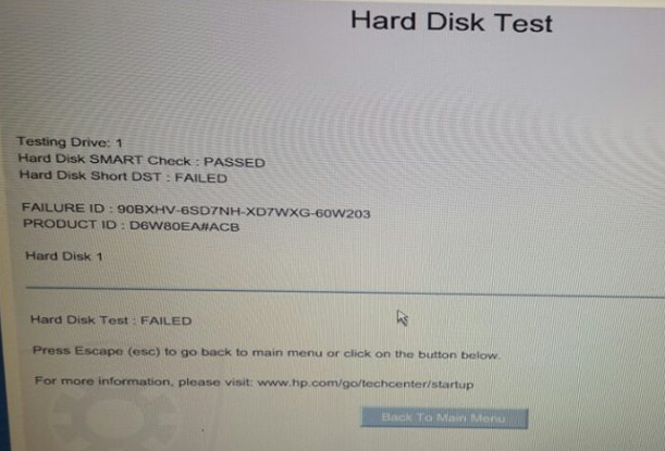 hard drive short dst check failed hp fix